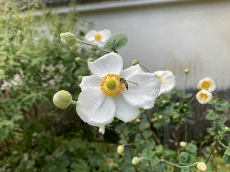 園芸品種に白の一重咲きがあります。花びらに見えるものはがく片です。