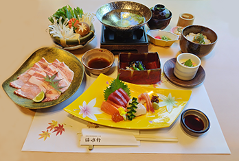 園内のレストラン活水軒では、ライトアップ期間中、夜間営業を行い、特別メニュー「薩摩豚のしゃぶしゃぶ御膳」を提供いたします。
