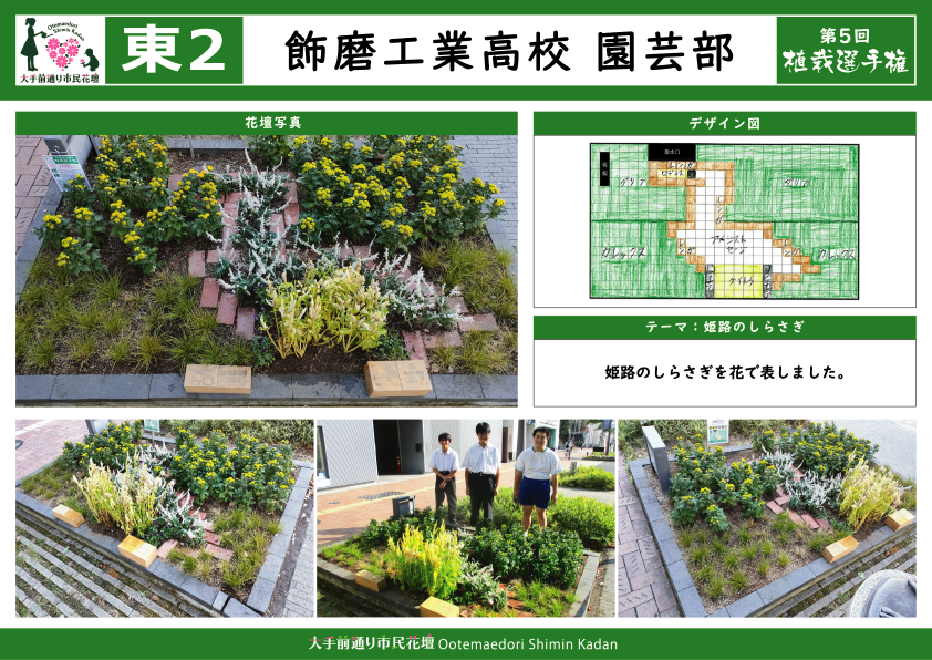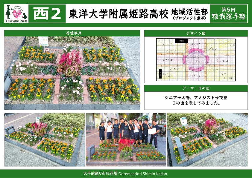 「大手前通り市民花壇」は、JR姫路駅から姫路城へと続くメインストリートにある大手前通りを挟み東西に12花壇設置されています。