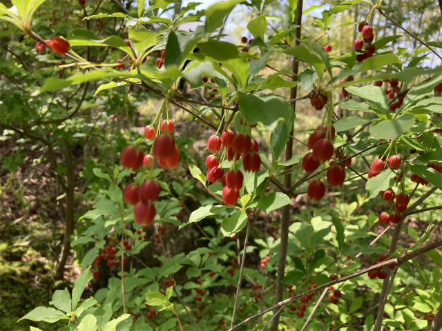 葉は秋に赤や黄色に紅葉する。