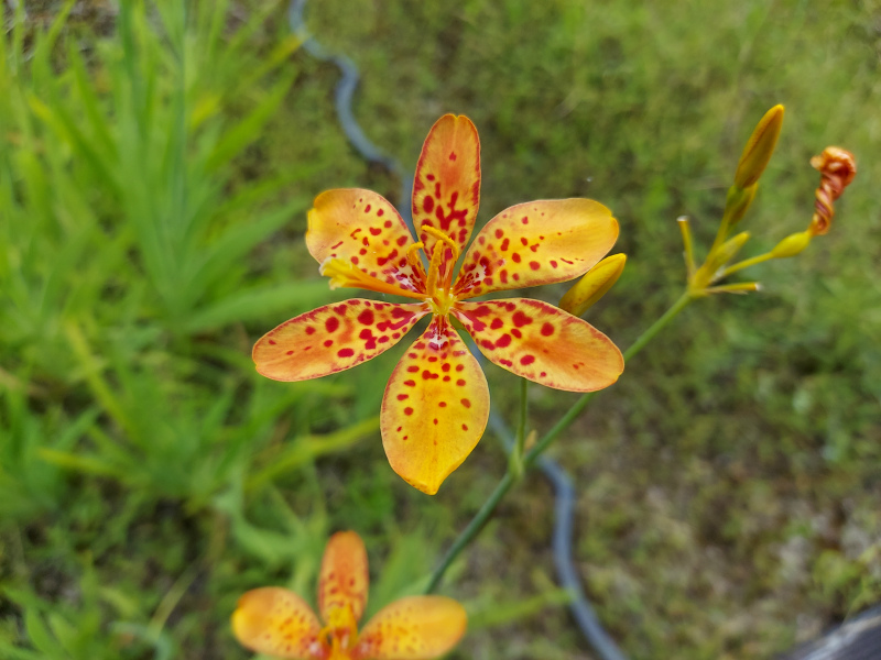 花びらは6枚でしわが多いため、フリルのように見えて優美です。一日花ですが、枝先から次々につぼみが開花するため花は絶えません。白い花もあります。