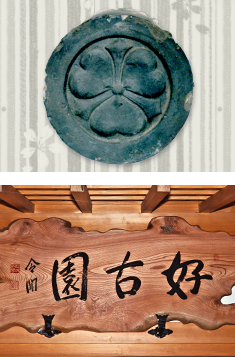 好古園入ロの扁額は、酒井藩校「好古堂」の督学であった松平惇典が後に開いた、家塾の塾頭であった結城義聞の子息で元東京大学教授・結城令聞氏の書です。